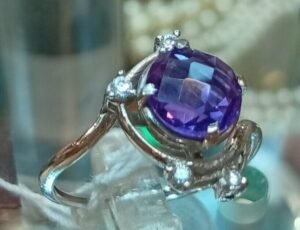 C6 Prsten + náušnice bílé zlato 14kt a 6,01 gr, kámen přírodní ametyst