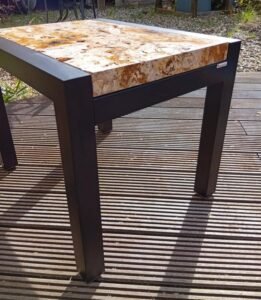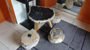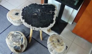Zkamenělé dřevo PALMA Indonézie, plát a 3x taburet